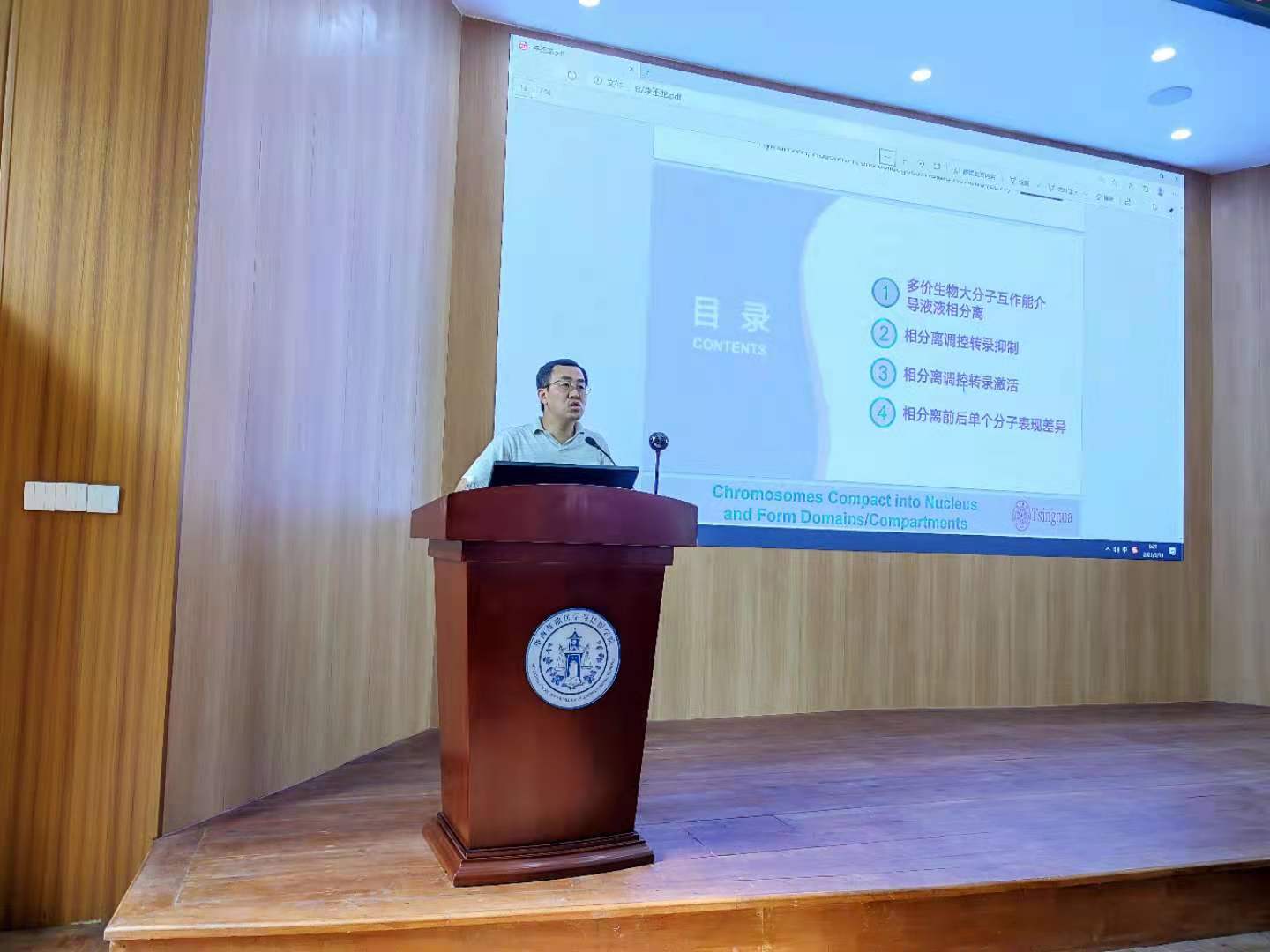 应beat365官网邀请,2021年5月18日上午9:00,清华大学生命科学学院李丕龙研究员在华西校区五教报告厅做了题为“Liquid-liquid Phase Separation in Gene Expression Regulation”的学术报告。