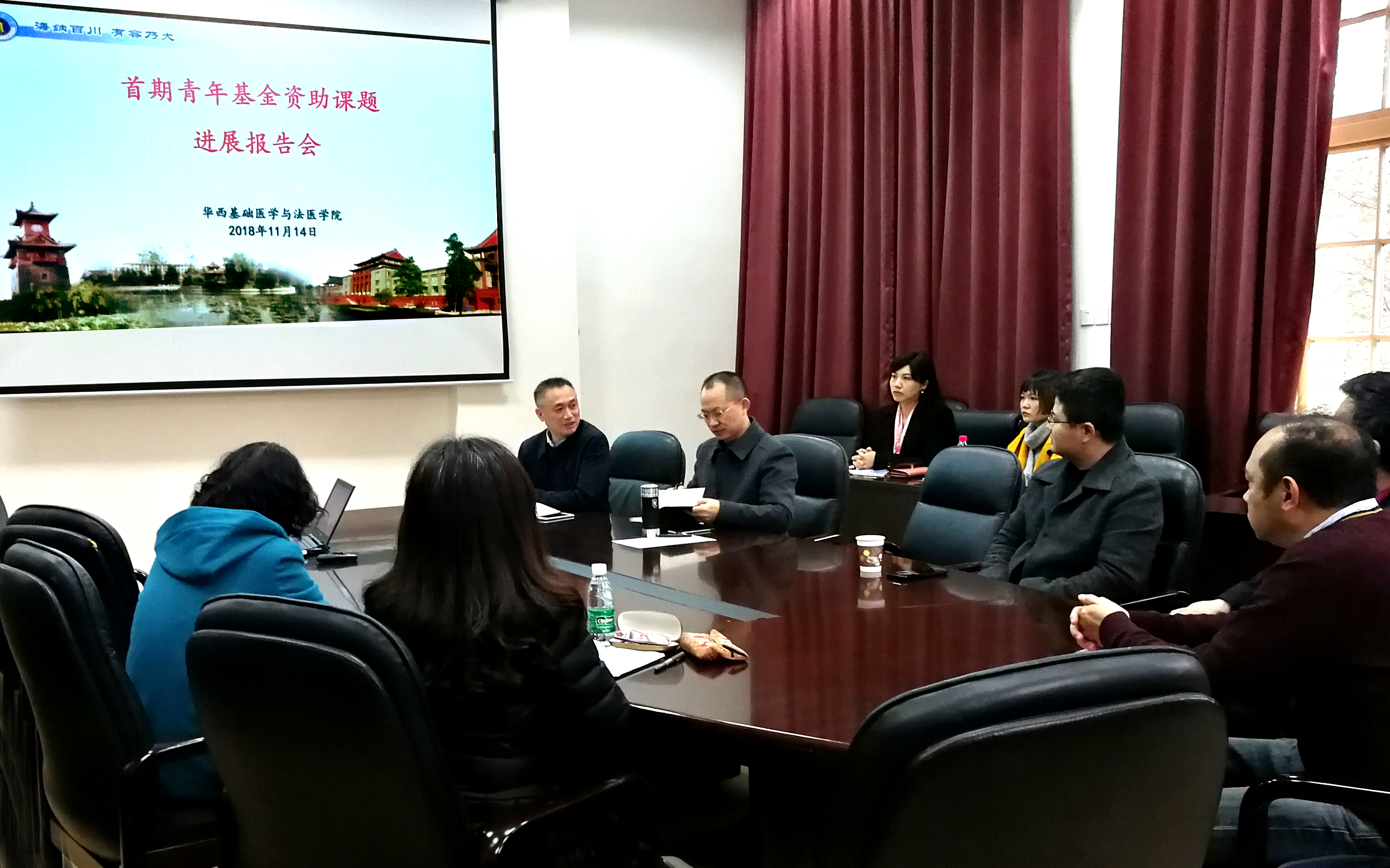 11月14日下午,学院首期青年基金资助课题进展交流会在华西第五教学楼会议室召开。本次报告会邀请寄生虫教研室主任陈建平教授、生物化学与分子生物学教研室主任刘戟教授、组织胚胎学与神经生物学教研室主任周雪教授、药理教研室主任周黎明教授作为点评专家,学院党委书记李昌龙教授、院长黄灿华教授、副院长雷鹏研究员、教授委员会主席刘肖珩教授和学院首届青年基金全体获资助教师参加交流。