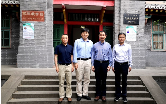 最后,黄灿华院长、李昌龙书记与陈林教授、邓初夏教授于五教楼前合影留念。