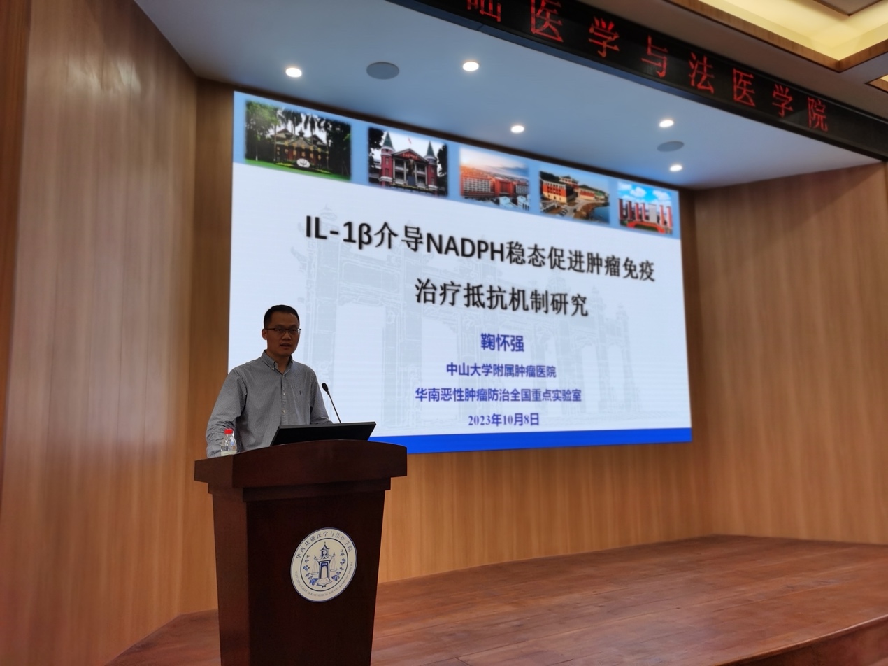 2023年10月24日上午10:00,应beat365官网邀请,中山大学鞠怀强教授在华西五教报告厅做了题为“IL-1β介导NADPH稳态促进肿瘤免疫治疗抵抗机制研究”的学术报告。