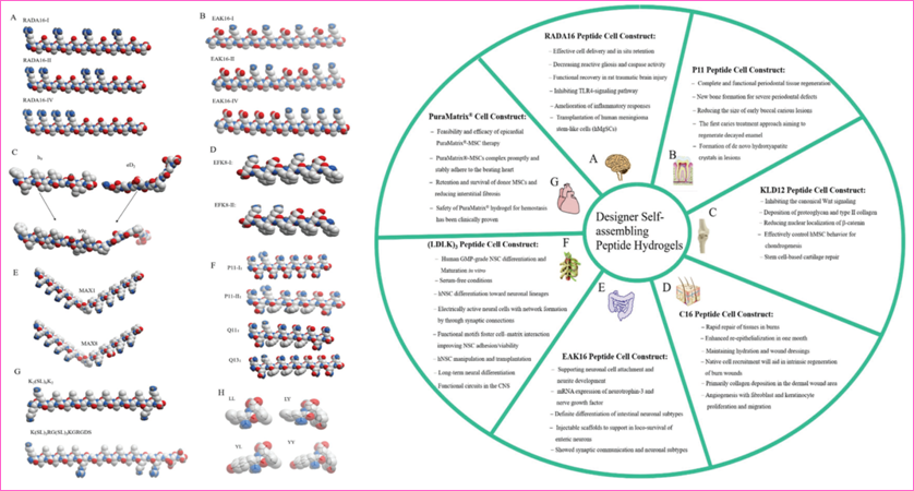图2.全世界正在研究的短肽分子构件模型及其纳米医学应用
