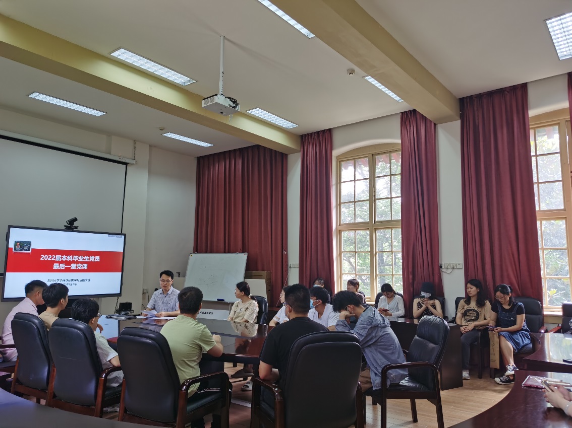 为了引导毕业生党员在新的学习工作岗位上牢记责任与担当,继续发挥先锋模范作用,6月24日,在五教二会议室学院专职组织员、毕业生辅导员郑风劲老师为即将离校的2022届本科毕业生党员上了“最后一堂党课”。