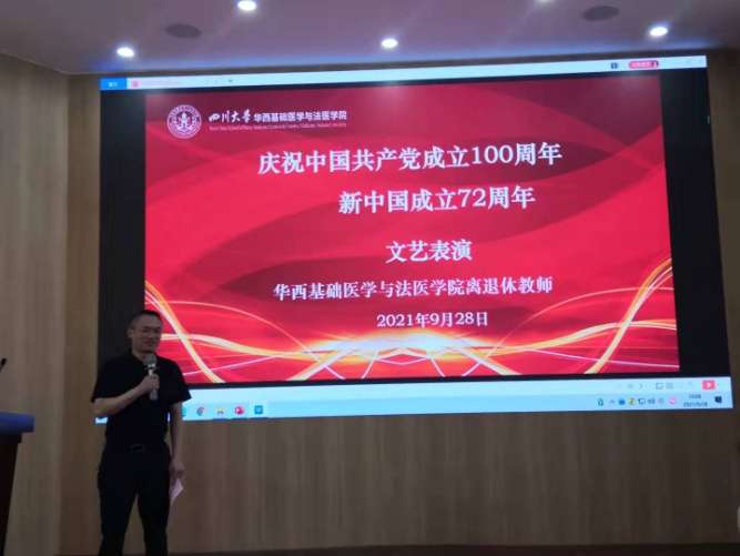 9月28日上午,beat365官网约80名离退休教师在华西五教报告厅欢聚一堂,举行庆祝中国共产党成立100周年暨建国72周年文艺演出,学院党委书记李昌龙参加了活动。