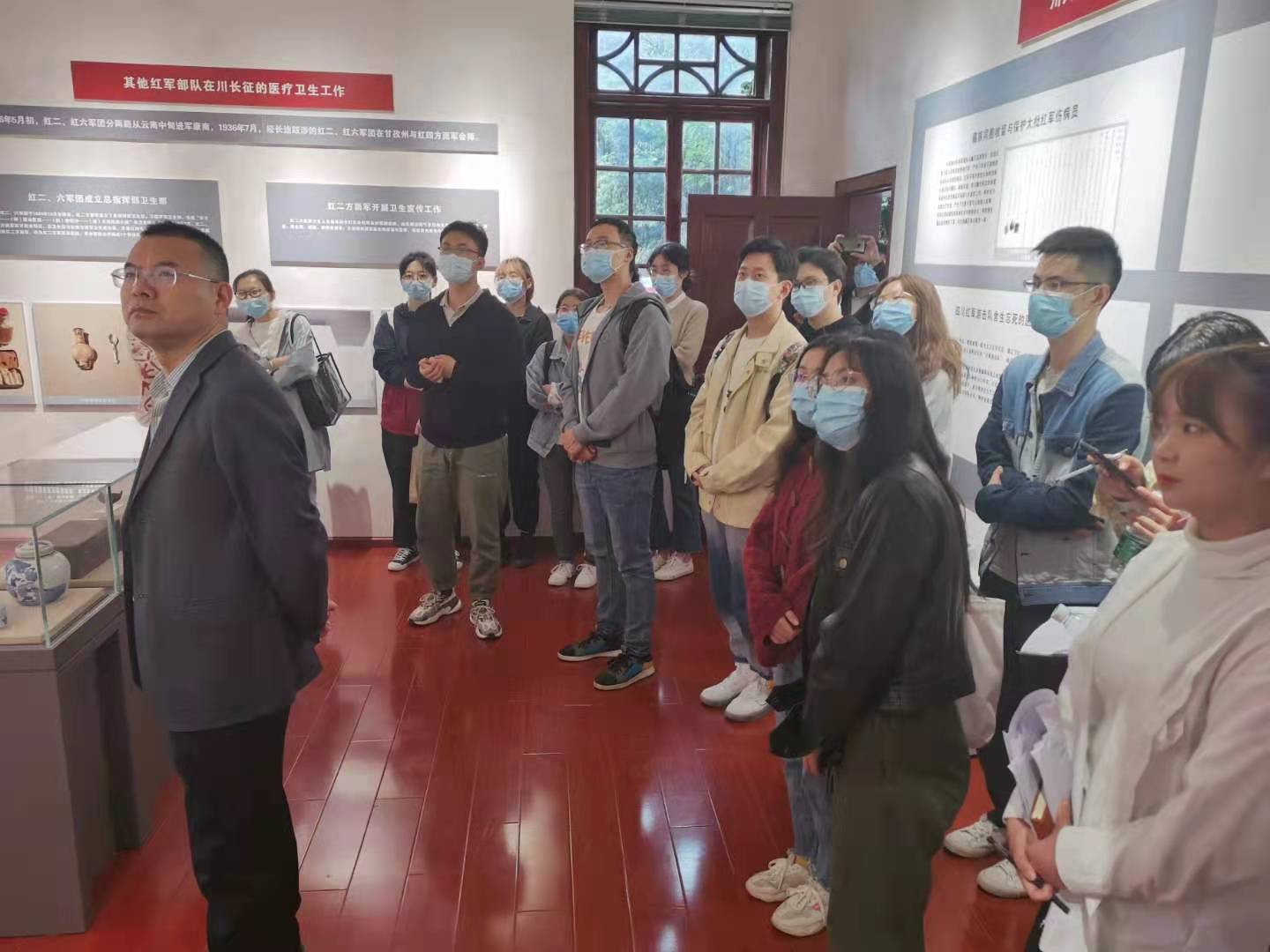 下午4时,学院党员同志们集聚四川卫生党史馆,分两批进入馆内,在讲解员的带领下,共同学习了解了四川卫生从1919年五四运动到2019年这一百年的历史,以及一百年来四川人献身于党的卫生事业和在四川大地上全国的卫生志士者为四川做出的贡献。