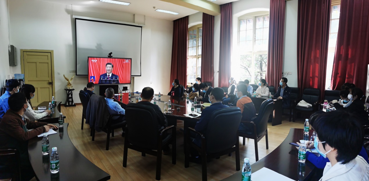 beat365官网全体在家院领导、两委委员、党支部书记、师生代表30余人在华西第五教学楼二会议室集中收看了大会直播盛况,其他师生员工在学院党支部、二级单位、团委的组织下采用电视、广播、网络、手机客户端等多种形式积极踊跃收看收听直播,认真学习讨论党的二十大报告。