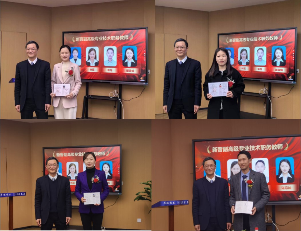 副校长赵长生首先代表学校向新晋副高级专业技术职务教师们表示祝贺。他指出,今年学校、学院为新晋高级专业技术职务教师们举行隆重而简洁的聘任仪式,就是要进一步强化尊师重教的氛围,树立良好的高校教师形象。青年教师是未来学校发展的重要骨干,希望青年老师要树立远大的理想和抱负,勇攀教学和学术高峰;要不断学习和提升自己的专业素养,热爱教育事业,关爱学生;要坚持师德师风第一标准,以德立身、以德立学、以德施教,努力做“传道授业解惑”的“经师”和“人师”的统一者,以副高级职称为新的起点,积极为学校高质量发展贡献更大力量。