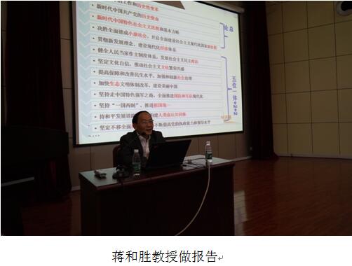 2017年11月15日下午,我校学习贯彻党的十九大精神宣讲团专家成员、经济学院蒋和胜教授应邀莅临beat365官网做宣讲报告。